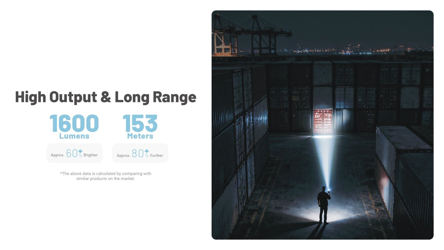 - 💡 1600 lumen maximale output — krachtig licht in een compact formaat
