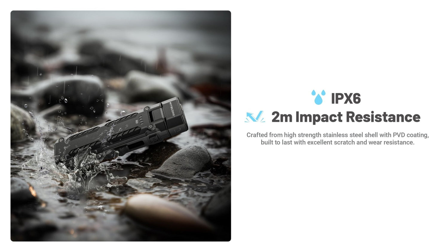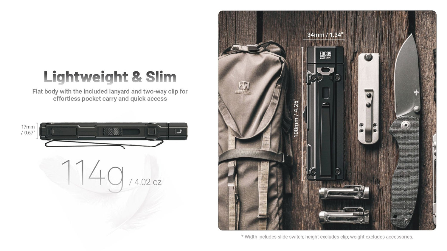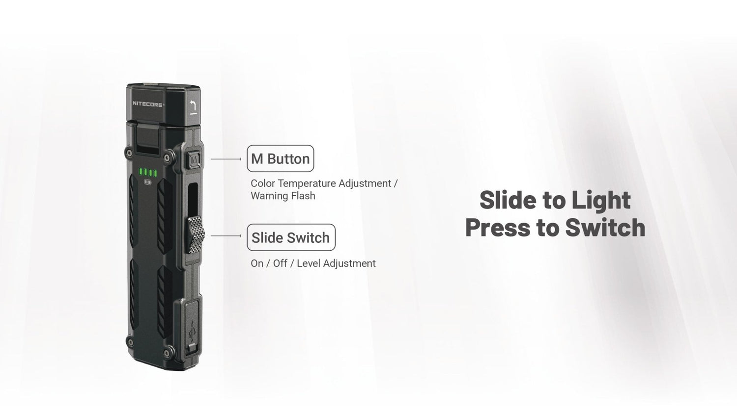 De dubbele TIR-optiek geeft een mooi egaal lichtbeeld, terwijl de ingebouwde 1.100 mAh accu tot 250 uur brandduur biedt. Dankzij USB-C opladen, ATR-warmteregeling, APC-laagverbruik en een intuïtieve schuif + M-knop bediening heb je een zaklamp die technisch ver boven de EDC-norm presteert.