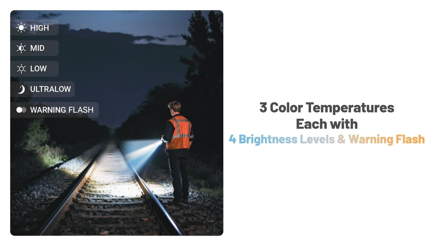 - 🎛 4 lichtstanden + waarschuwingflits voor elke kleurtemperatuur