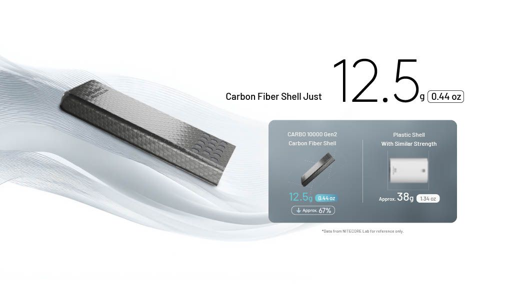 De Nitecore Carbo 10000 Gen2 is een professioneel outdoor fast-charge powerbank die speciaal is ontwikkeld voor gebruik in veeleisende buitenomstandigheden. Hij combineert een koolstofvezelbehuizing met magnesium-legering heatsinks en een hoog energie-dichtheidscel. Dankzij twee-wegs snel laden tot 30 W, een volledig waterdichte behuizing (IPX8) en ultracompacte afmetingen is dit een betrouwbare energiepartner voor onderweg.