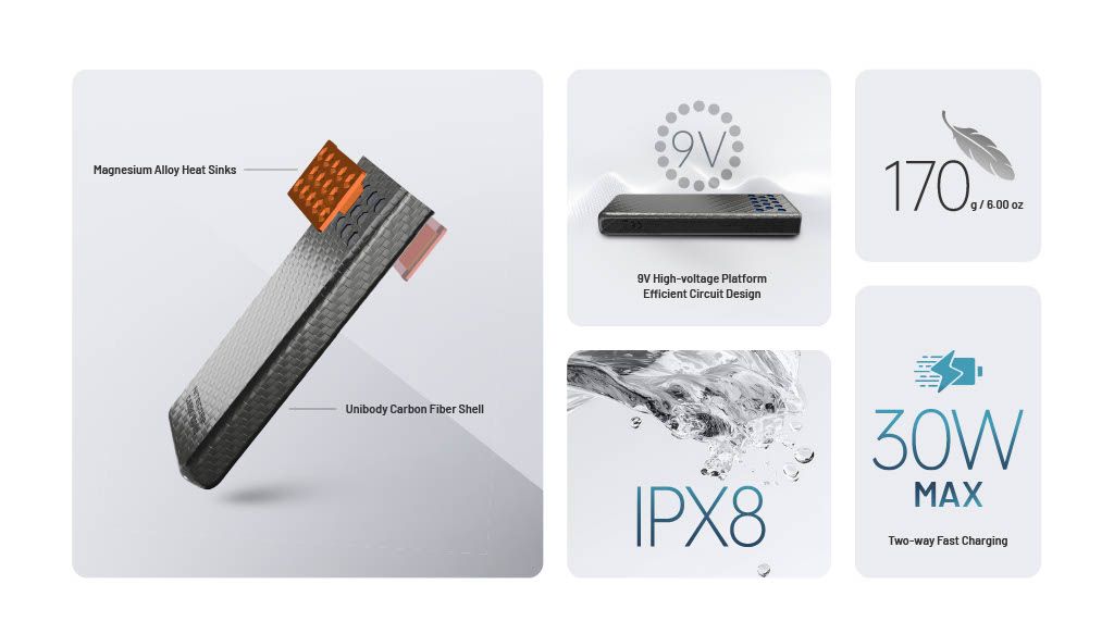 - 🛡️ Robuust constructiemateriaal – koolstofvezel + magnesium heatsinks voor duurzaamheid