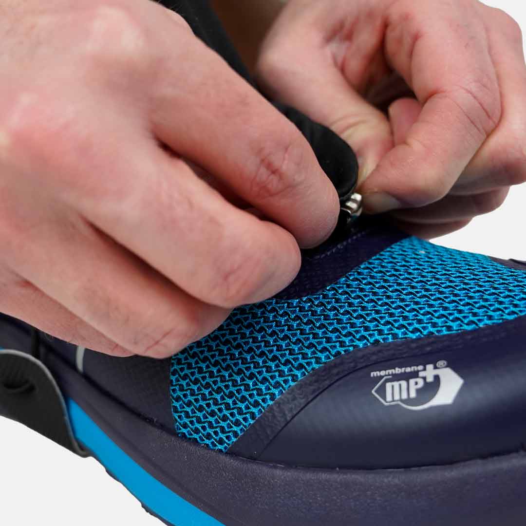 Hook & loop (klittenband) systeem voor een stevige, duurzame aansluiting op je schoen.