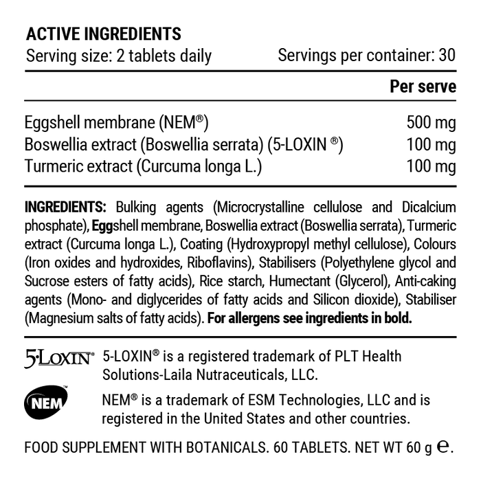 Belangrijkste ingrediënten: NEM®, 5-LOXIN®, curcumine